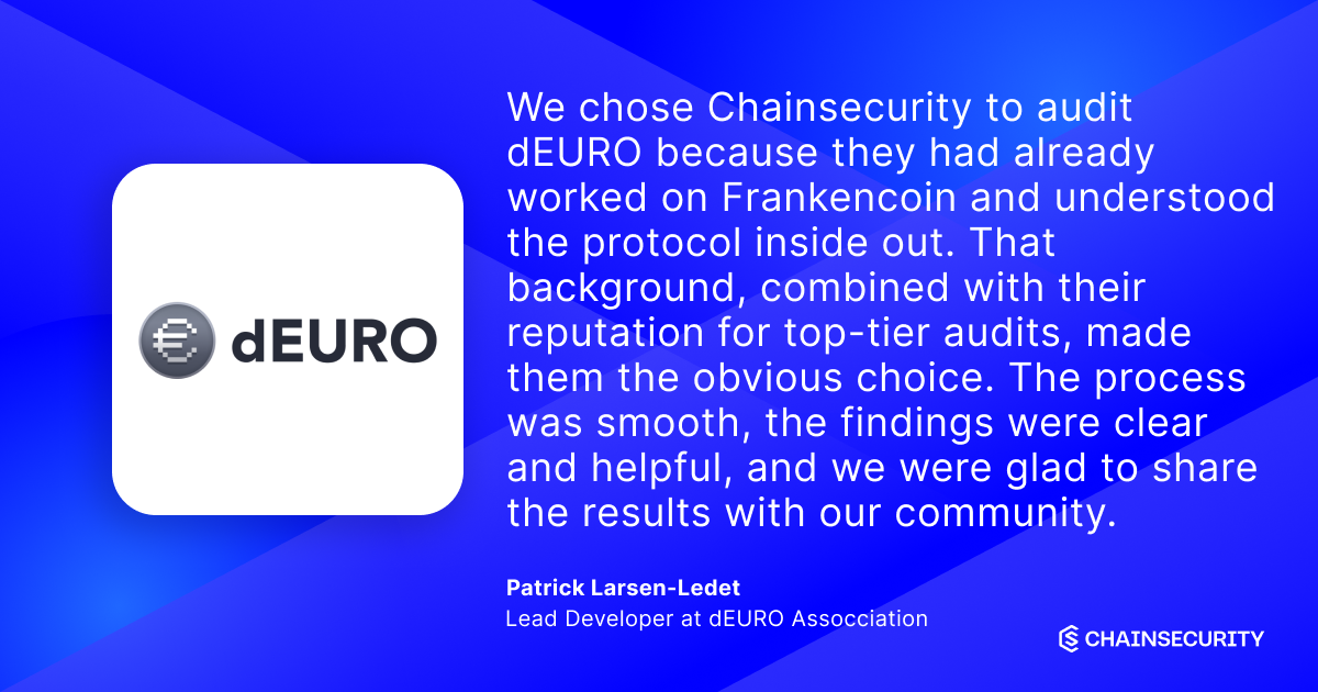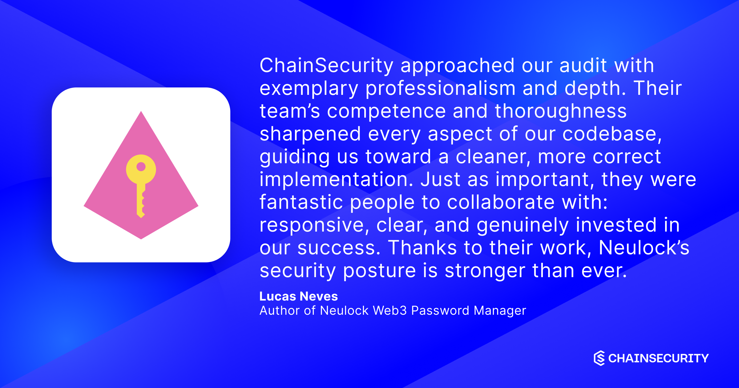 ChainSecurity has been consistently thorough in their reviews, reliable and accommodating in our time working with them.