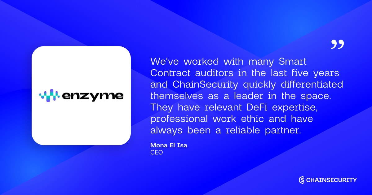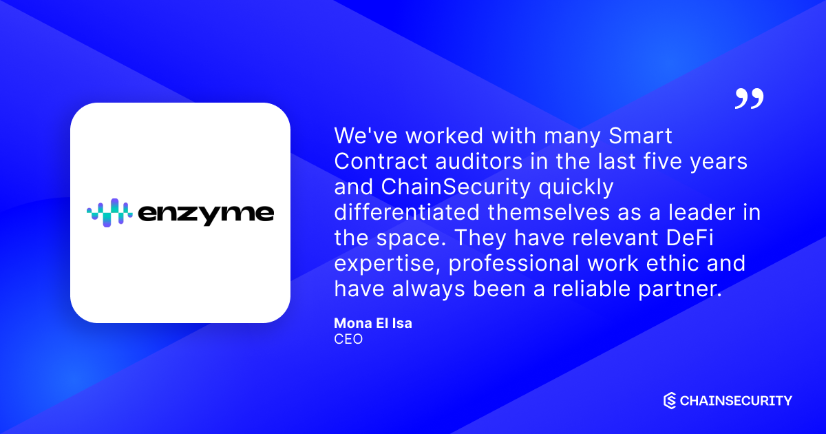 The most critical subjects covered in our audit are functional correctness, interaction with external systems according to their documentation, and compatibility with the Enzyme system. Security regarding all the aforementioned subjects is high. The general subjects covered are trustworthiness, documentation, and error handling. Security regarding all the aforementioned subjects is high. In summary, we find that the codebase provides a high level of security. It is important to note that security audits are time-boxed and cannot uncover all vulnerabilities. They complement but don’t replace other vital measures to secure a project.