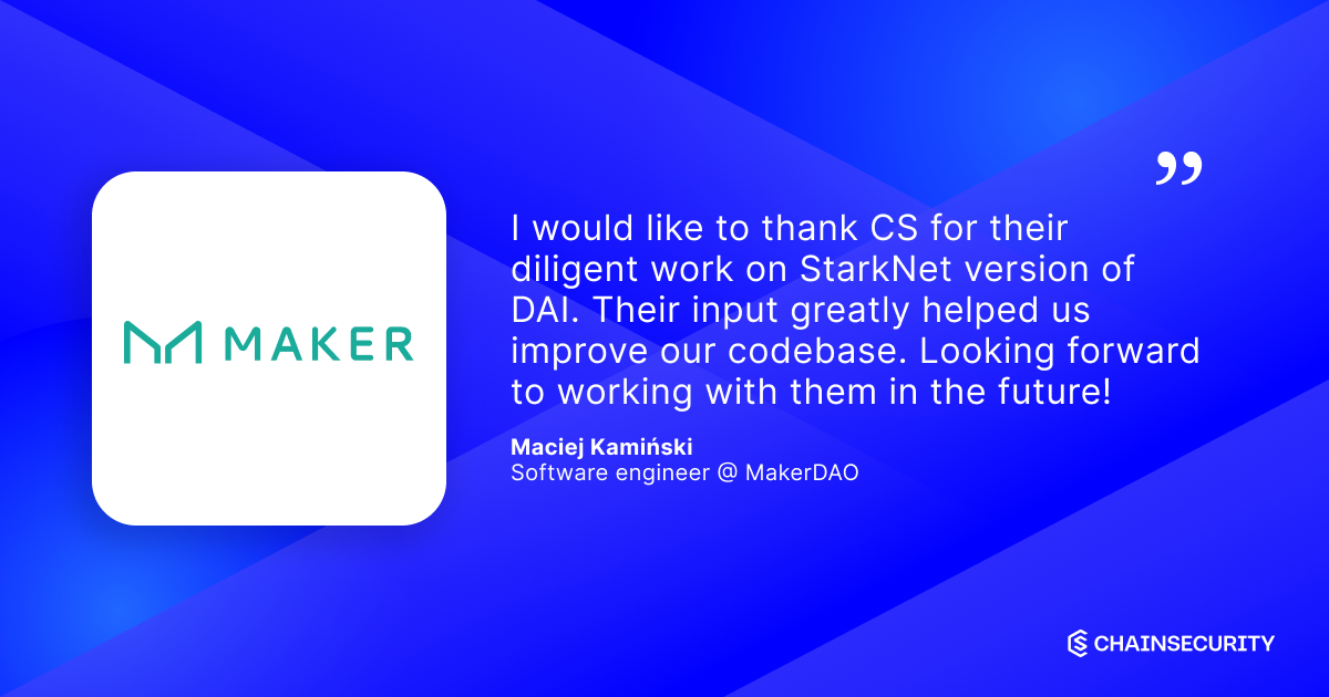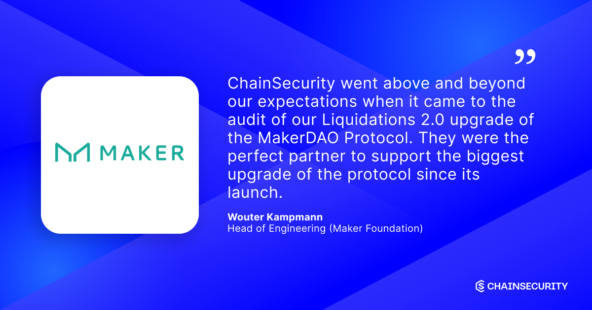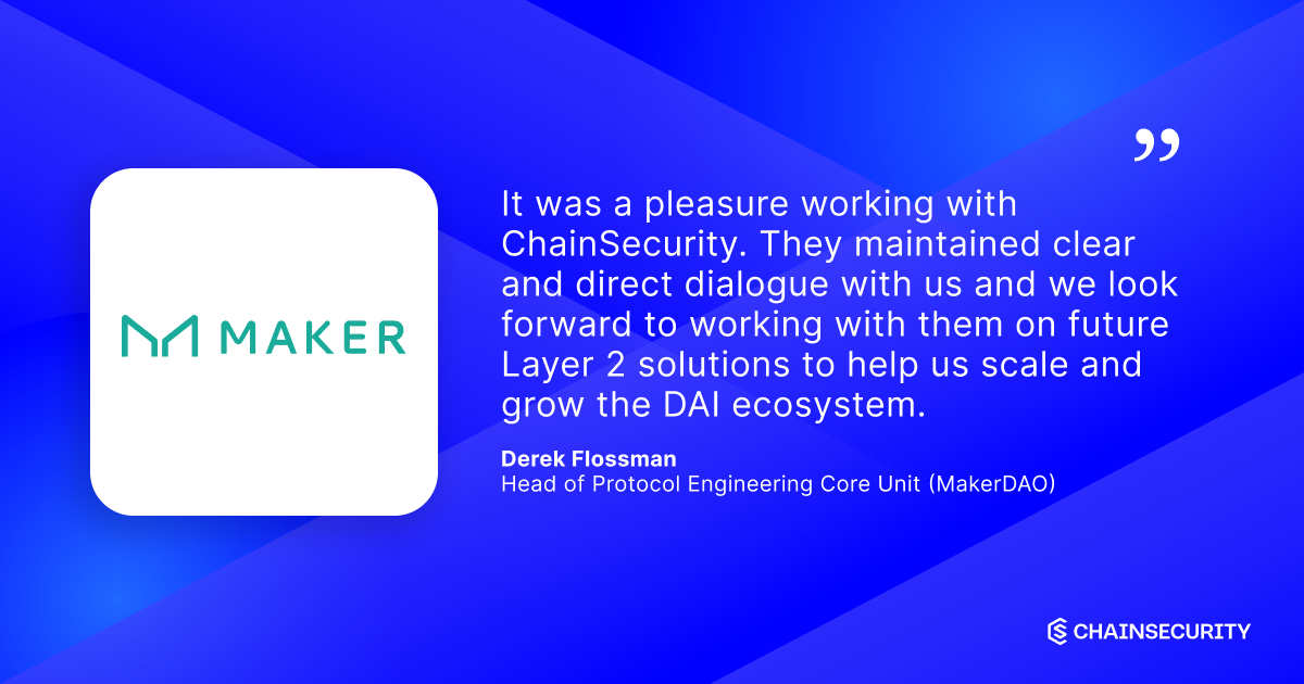 During the investigation ChainSecurity Ltd noted that the project is of high quality, employs good coding practices and has clean code. Despite the system’s complexity the DAO maintain a clear overall structure thanks to the high degree of modularity and low coupling between components.