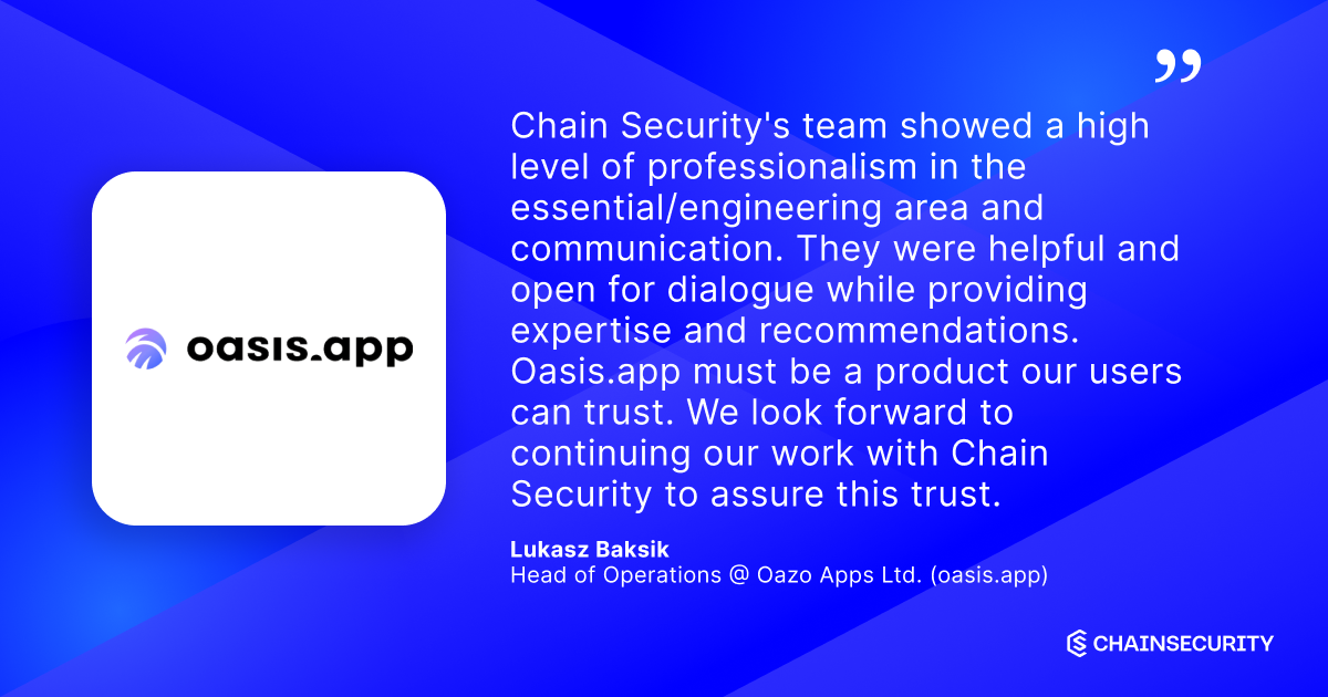 Oasis.app implemented an automated management solution for Maker’s collateralized debt positions (vaults). Users manage command triggers which are executed by bots. In the current implementation, users can allow the Automation smart contract to automatically close their vault position should the collateralization go below a certain threshold. All in all, no high severity issues were uncovered. All the issues have been addressed.