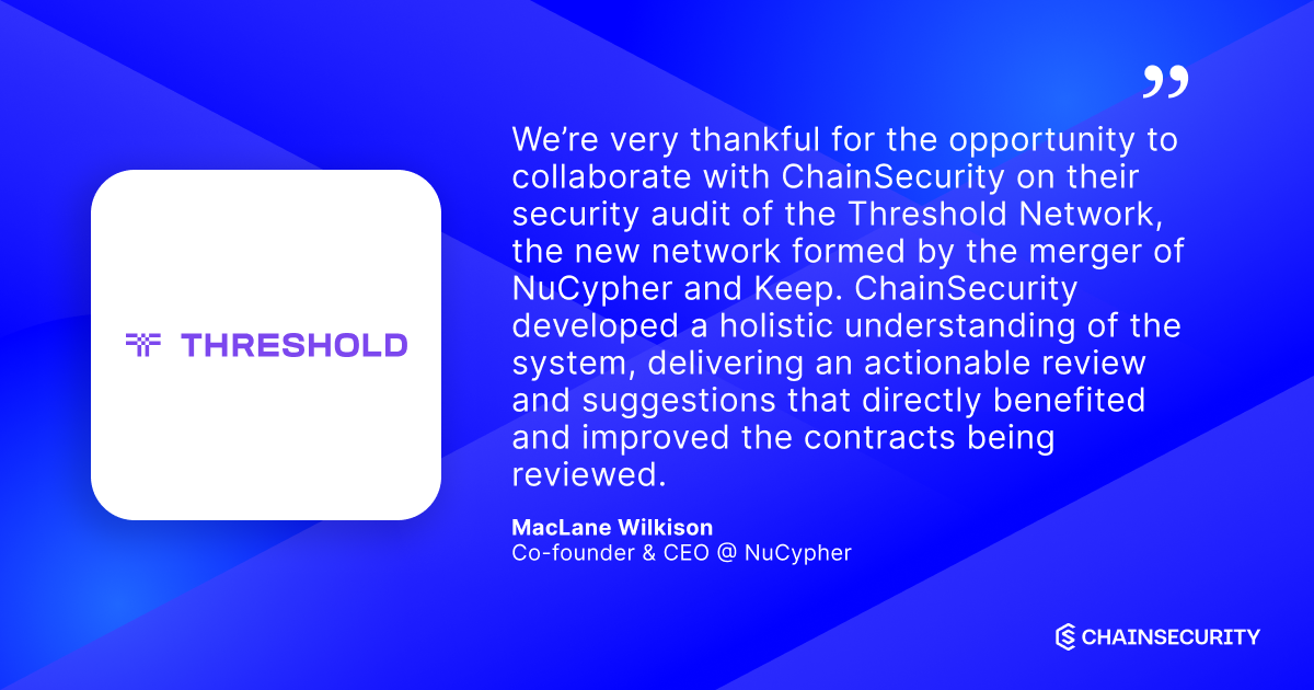 Our audit investigated technical issues such as the initialization of keys and their distribution, the requirements of the validator set, and the upgradability of the smart contracts. We also looked into the reward system and the overall governance to check their soundness and design.